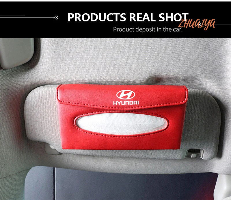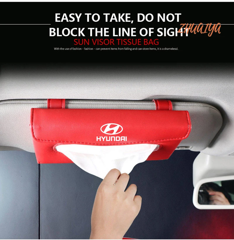 1set Universal Car Sun Visor Tissue Box Holder PU Leather Tissue Box Cover Case Accessories For logo i20 i30 i35 iX35
