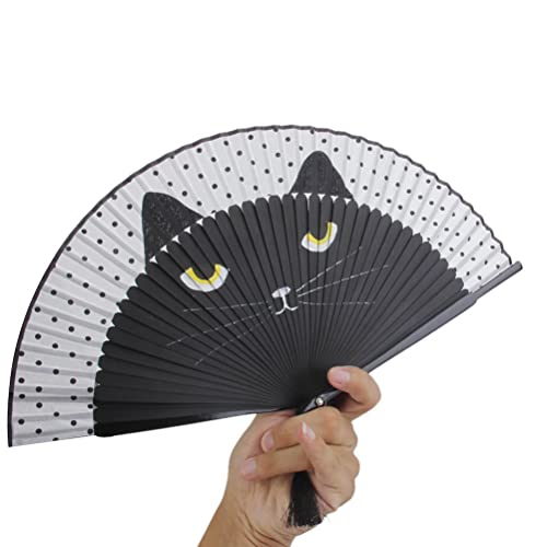 1SourceTek Ventaglio pieghevole portatile in seta da 14 "(38 cm) Ventaglio pieghevole portatile da donna con confezione regalo - Stile fumetto giapponese (Gatto nero)