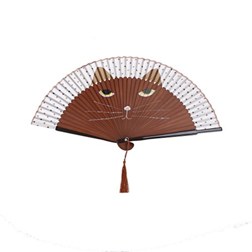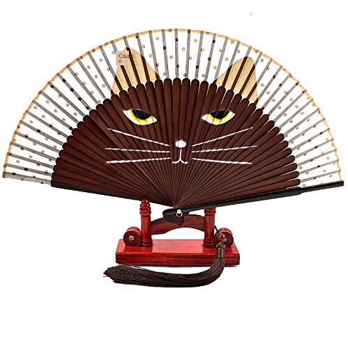 1SourceTek Ventaglio pieghevole in seta, 38 cm, da donna, con protezione in tessuto, stile retrò cinese (gatto caffè)