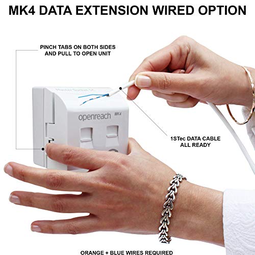 1STec Cavo di prolunga per modem ADSL a banda larga in fibra ottica per collegamento Sky Q, Talktalk, Plusnet, EE, Infinity o il router Post Office ad un microfiltro o BT Openreach RJ11/RJ45 + presa elettrica Master per combinazione dati 50 m White