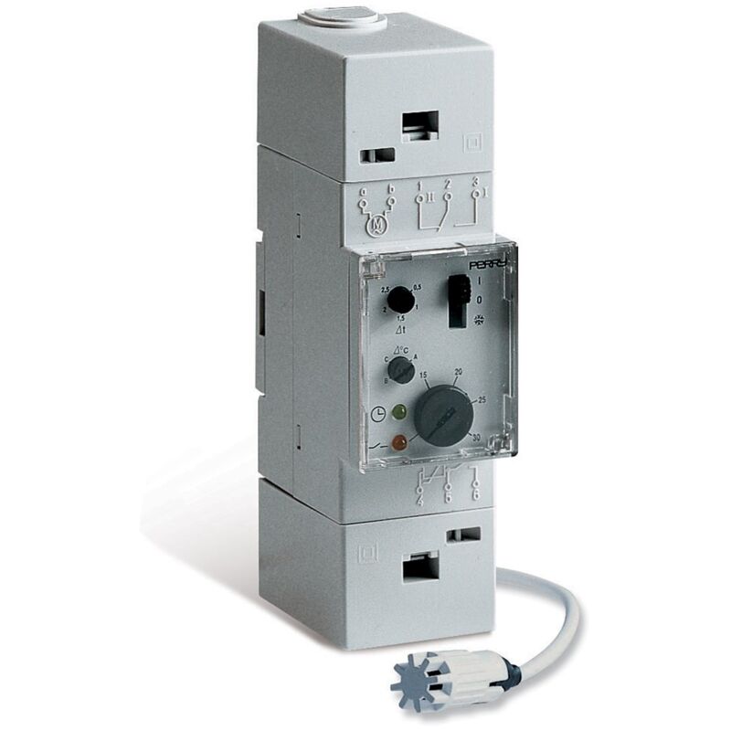 Dettagli tecnici Adatto per (termostati) Apparecchio di riscaldamento, Climatizzatore Alimentazione rete elettrica Dimensione del prodotto, larghezza 3.5 cm Dimensione del prodotto, lunghezza 6 cm Dimensioni (L x L x A) 6 x 3.5 x 12.8 cm Dimensioni prodotto Altezza 12.8 cm Funzionamento (meccanico/elettronico) elettronico Metodo di montaggio Guida DIN Tensione di funzionamento 230 V Tipo prodotto Termostato da installazione Termostato per guida DIN TMTEO 83 Regolazione elettronica della temperatura con regolazione su 2 livelli di temperatura. Caratteristiche Modalità di funzionamento: ON/ OFF/ antigelo Display LED: stato relè / notturno. Incluso nella consegna Incl. sensore remoto tipo NTC. Requisiti di sistema null