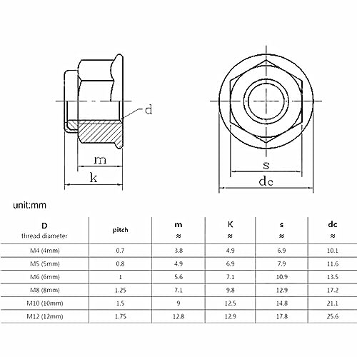 2-10pcs M4/M5/M6/M8/M10/M12 Tipo di coppia prevalente in acciaio inossidabile Tutti i dadi autobloccanti esagonali con flangia con inserto in metallo, M8(10pcs)