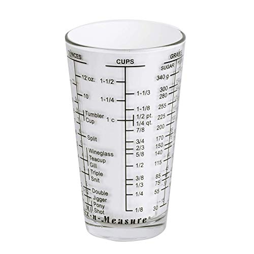 Il bicchiere da 470 ml è lavabile in lavastoviglie con segni permanenti di cucchiaini, cucchiai, once e millilitri.