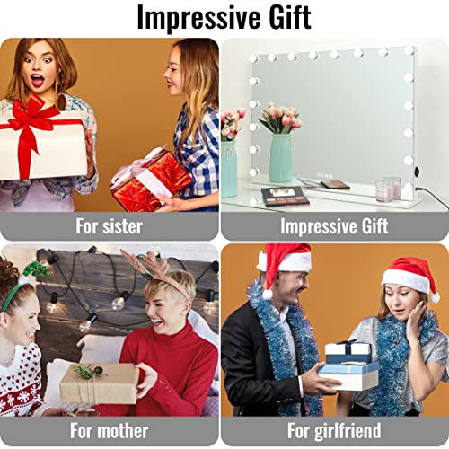 Dimensioni grandi e design elegante: la dimensione dello specchio da trucco è di 80 cm x 60 cm, con 18 luci LED, abbastanza grande per il tavolo da toeletta. Con il design in stile Hollywood, questo specchio da trucco da sogno con illuminazione può essere una decorazione elegante per la vostra camera da letto e il vostro lavabo. Accendere e spegnere la luce toccando il sensore centrale nello specchio.