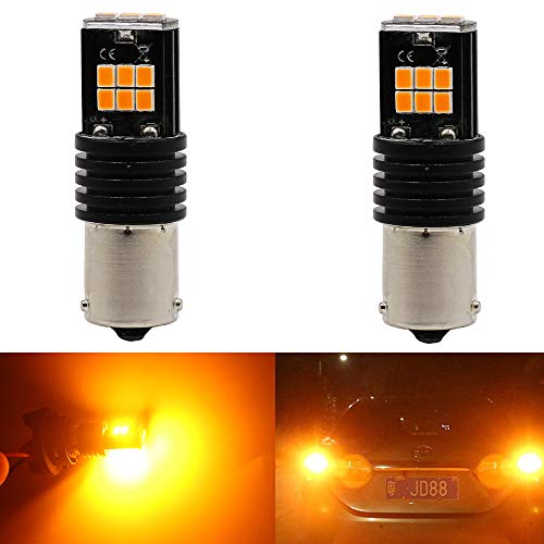 (set di 2 lampadine) - 15SMD 2835 chip ambra / giallo ad alta luminosità per lampadina, tensione di funzionamento: 9 V-18 V (per veicoli da 12 V), dimensioni: 5,3 x 1,1 x 1,1 cm.
