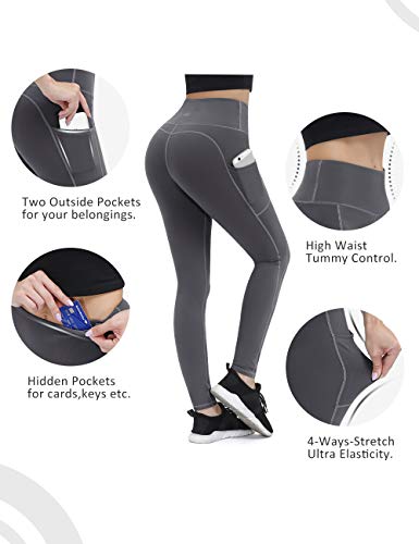 2-Pack Leggings Donna Pantaloni Compressione Sportivi con Tasche Vita Alta Slim Fit per Yoga Sportivi Fitness Palestra Gym Sport Nero Grigio S