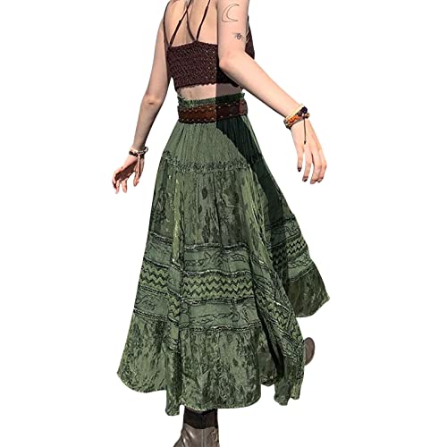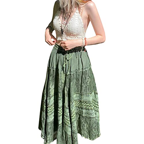 2000 Donne Fairycore Grunge Estetica Pizzo Gonna Midi y2k Kawaii Vintage Stampa Grafica Gonne, Verde, S