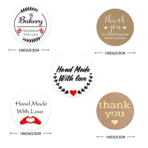 2000 Etichette Autoadesivo handmade with love realizzato a mano con font nero su carta Round Baking Sticker kraft etichette adesive per rotolo 1 Roll