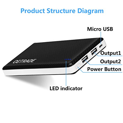 20000mAh Power Bank Caricabatterie Portatile Telefono,Batteria Esterna Universale Doppia Uscita Enorme Capacità Pacco Batteria, Nero-Bianco