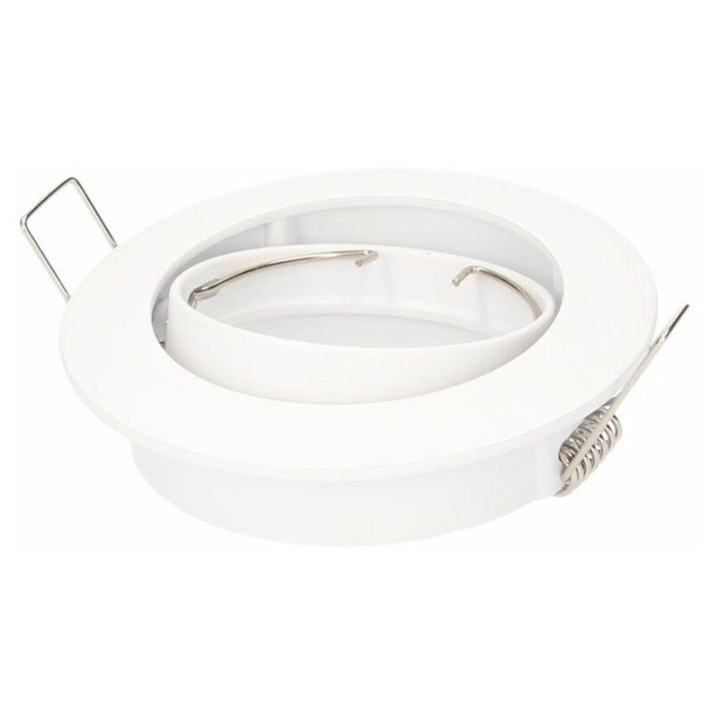 Anello da incasso tondo basculante Colore: bianco Tappo: GU10 incluso Per uso interno IP20 Dimensioni: Ø84x25mm Incasso: 75mm