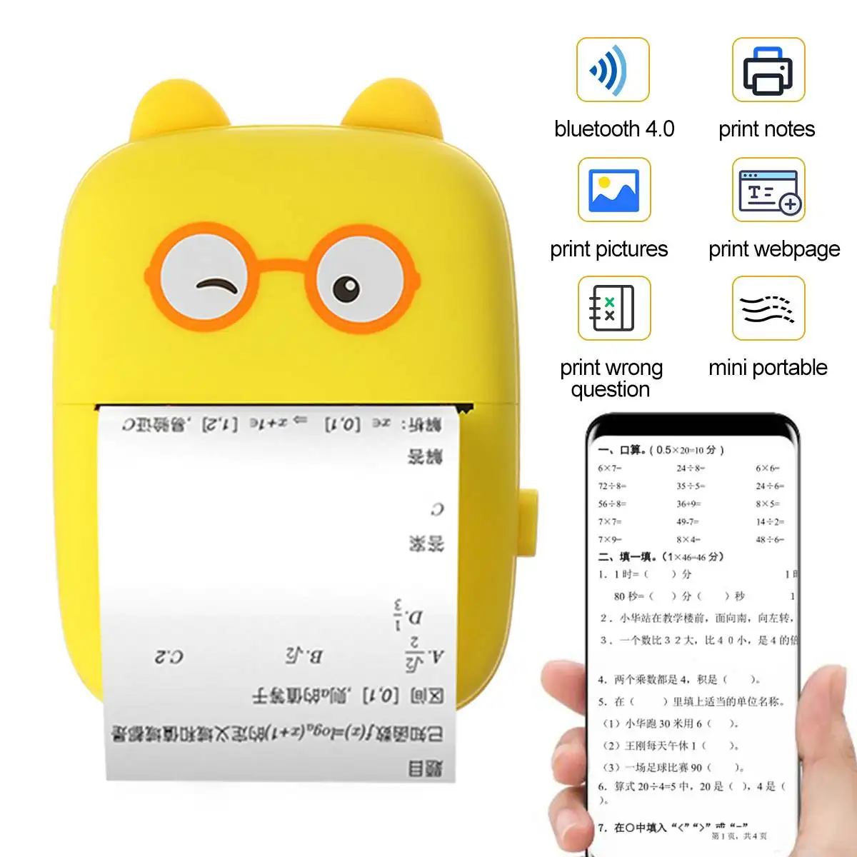 200DPI Cute Portable Mini Thermal Printer Wireless bluetooth Photo Label Memo Wrong Question Printing with USB Cable