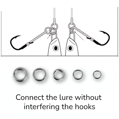 [CONFEZIONI DA 200 PEZZI] Questo connettore per catena ad anello per attrezzatura da pesca È 200 pezzi di anelli divisi ad alta resistenza in una scatola di plastica, 5 tipi, ogni tipo per 40 pezzi