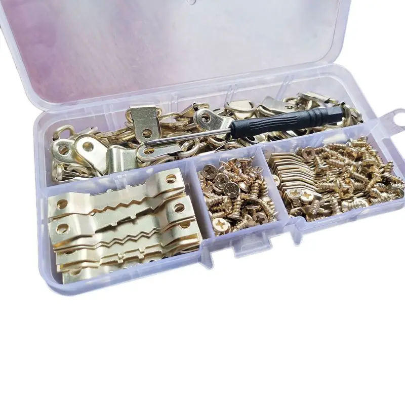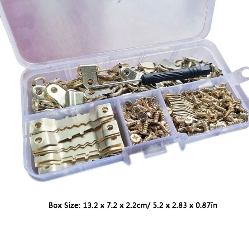 200pcs/set D Ring Picture Photo Oil Painting Frame Sawtooth Hanger Hook Screws With Screwdriver Kits Mounted Accessories Tool