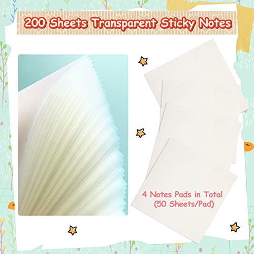 200Pz Foglietti Adesivi Trasparenti, Note Adesive Trasparenti Impermeabili Blocchetti Memo Adesivi, Rimovibili Blocchetti Adesivi Trasparenti Sticky Notes Set Carta Adesiva per Studenti/Scuola/Ufficio