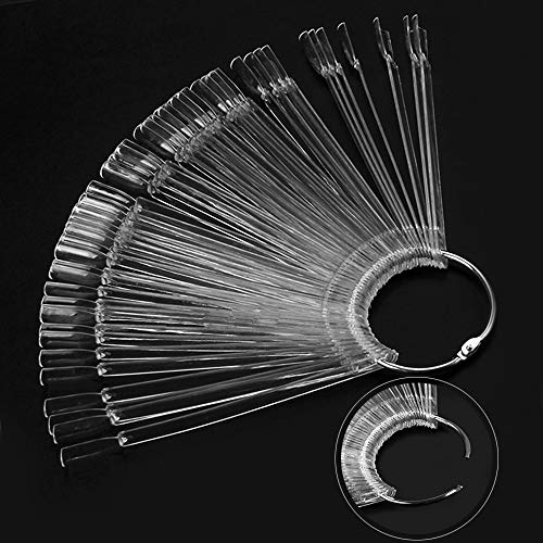 Il pacchetto include: 200pz Espositore a Ventaglio per Unghie Finte Naturali Tip Display Trasparente con 4 Anelli.