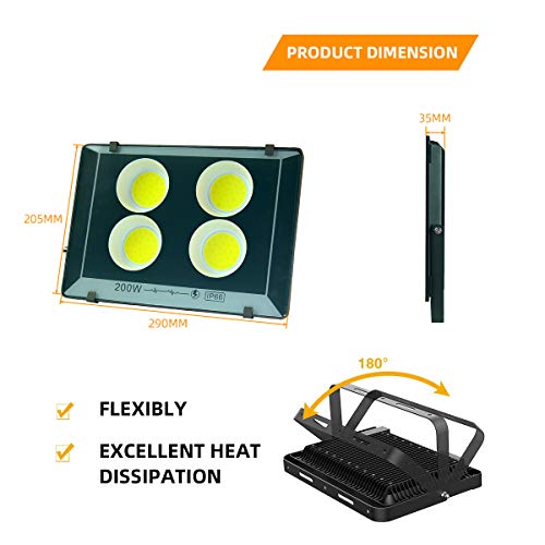 LED 200W Luci Inondazione Esterno Luminoso Lampada Flood Luce Sicurezza Impermeabile IP65 Muro Risparmio Energetico Terrazza Parcheggio Lotto Giardino Strade Piazza Terreno Gioco (Luce Bianco)