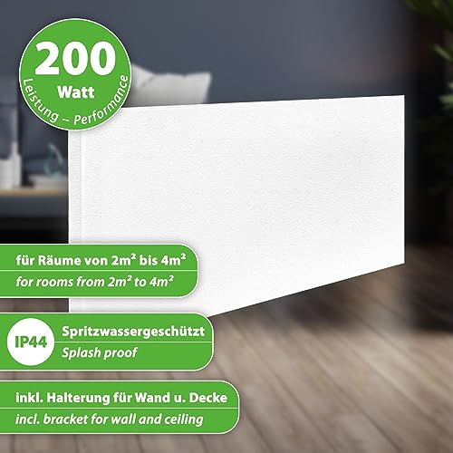 Robusto radiatore a infrarossi Fenix resistente all'usura per montaggio a parete e a soffitto (supporto e cavo da 1,5 m senza spina in dotazione).