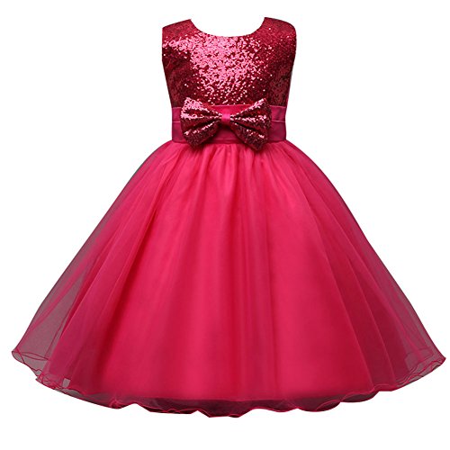 2017 Abito Estivo Bambina - Pizzo Abiti da Cerimonia - Ragazza Estate Vestito di Paillette Rose/3-4anni /110cm