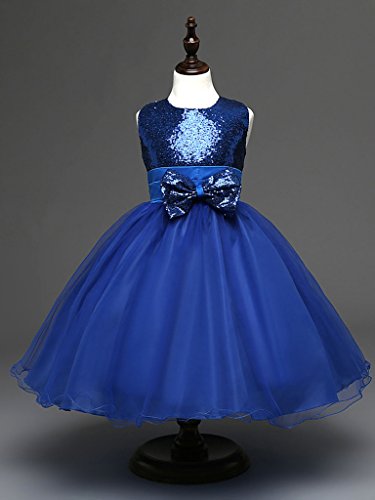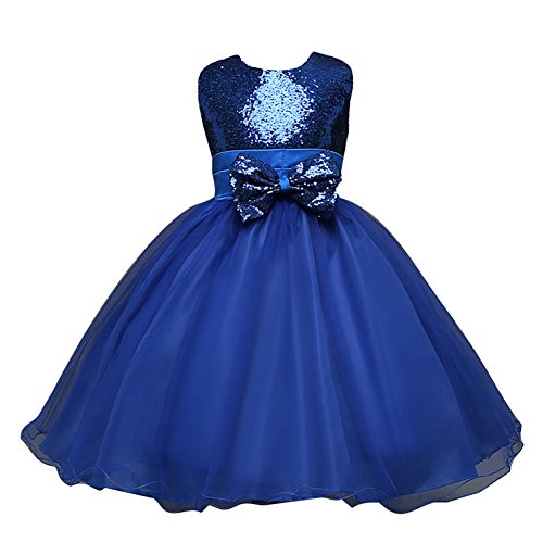 2017 Abito Estivo Bambina - Pizzo Abiti da Cerimonia - Ragazza Estate Vestito di Paillette Blu Marino/2-3anni /100cm