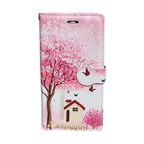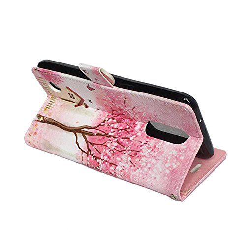 LG K8 2017 Case - custodia in cuoio Premium con funzione di supporto posteriore, slot di chiusura magnetica e carta di credito per LG K8 2017 Custodia (PINK TREE HUT BOOK)
