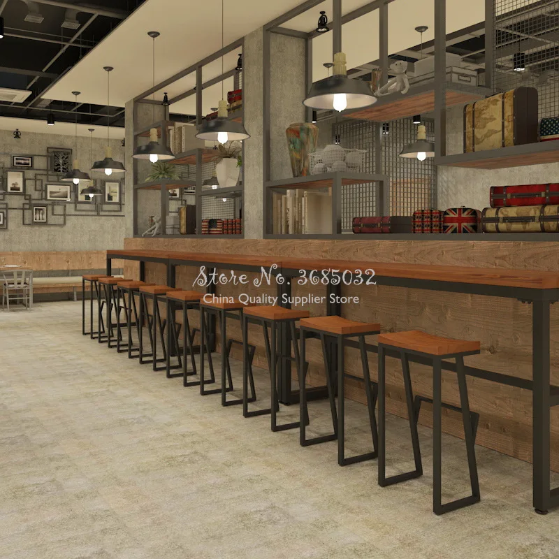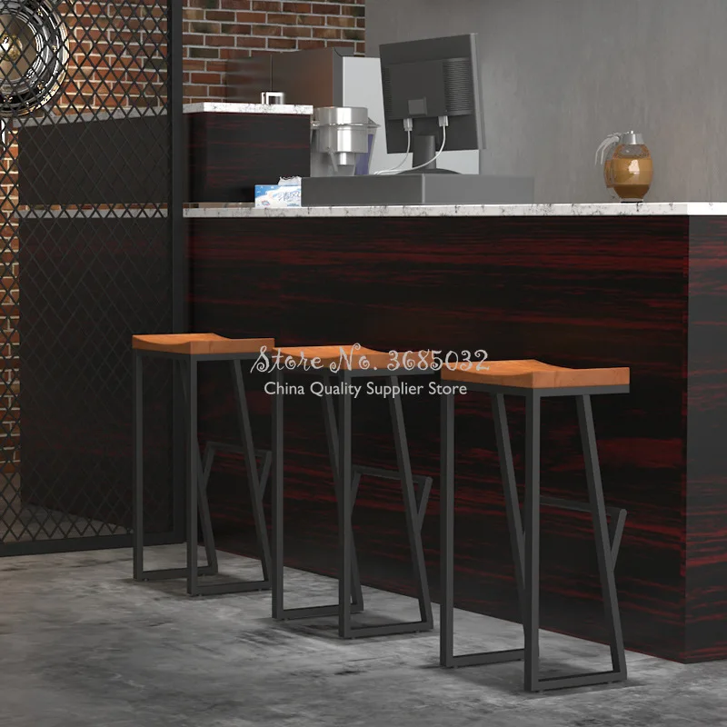 2019 Retro Modern Bar Stools Bar Chair Creative High Stool Steady Stylish Wrought Iron Solid Wood Leisure Front Coffee Chair