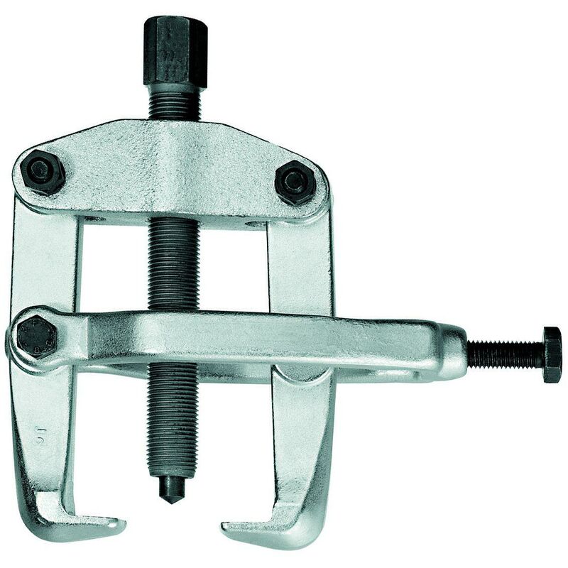 La staffa di serraggio spinge le griffe dietro il pezzo da estrarre evitando lo slittamento dell'estrattore, La staffa di serraggio spinge le griffe dietro il pezzo da estrarre evitando lo slittamento dell'estrattore