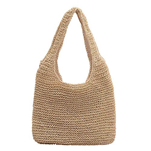 2020 - Borsa estiva in paglia da spiaggia, grande capacità, stile casual, per donne, spiaggia, viaggi, vacanze o uso quotidiano, Beige (Beige), Taglia unica