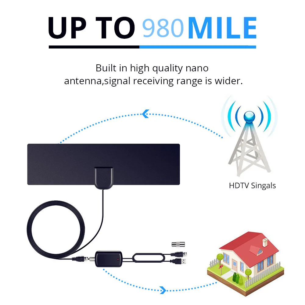 2020 Digital HDTV Antenna TV receiver Indoor 980 Miles with Amplified Booster 4K VHF Freeview Local Channel clear signal Aerial