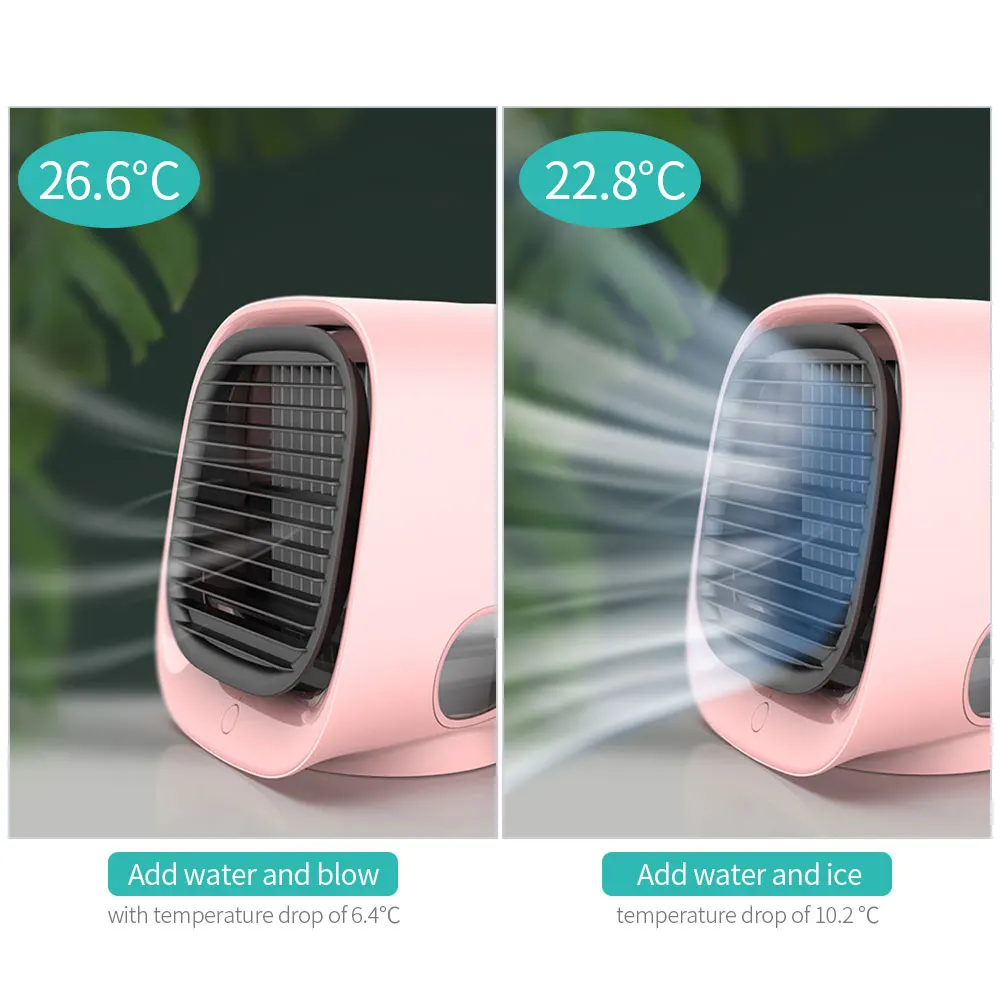2020 Mini Air Conditioner Mini Portable Fan Usb Valve Lator Air Cooler Usb Fan With Colorful Night Light Can Put Water And Ice
