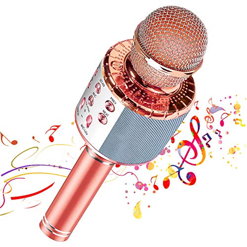 2020 Nuovo design - Microfono Karaoke Bluetooth senza fili, Microfono portatile Altoparlante Registratore, Altoparlante Karaoke ricaricabile (Rose Pink)