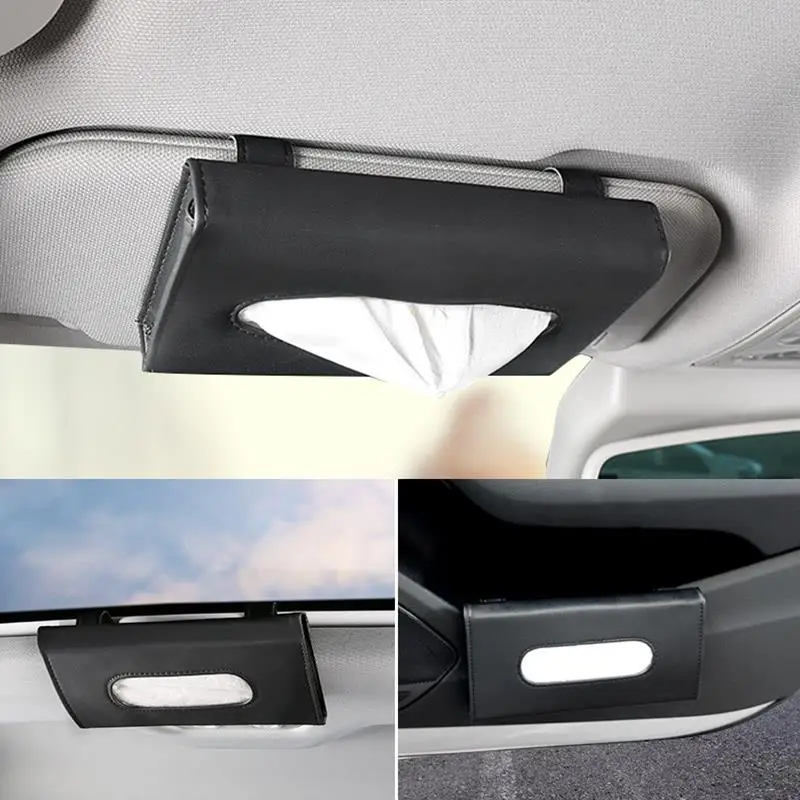 2020 Car Visor Tissue Holder PU Leather Hanging Paper Towel Clip Napkin Holder Backseat Tissue Case Auto Interior Accessories
