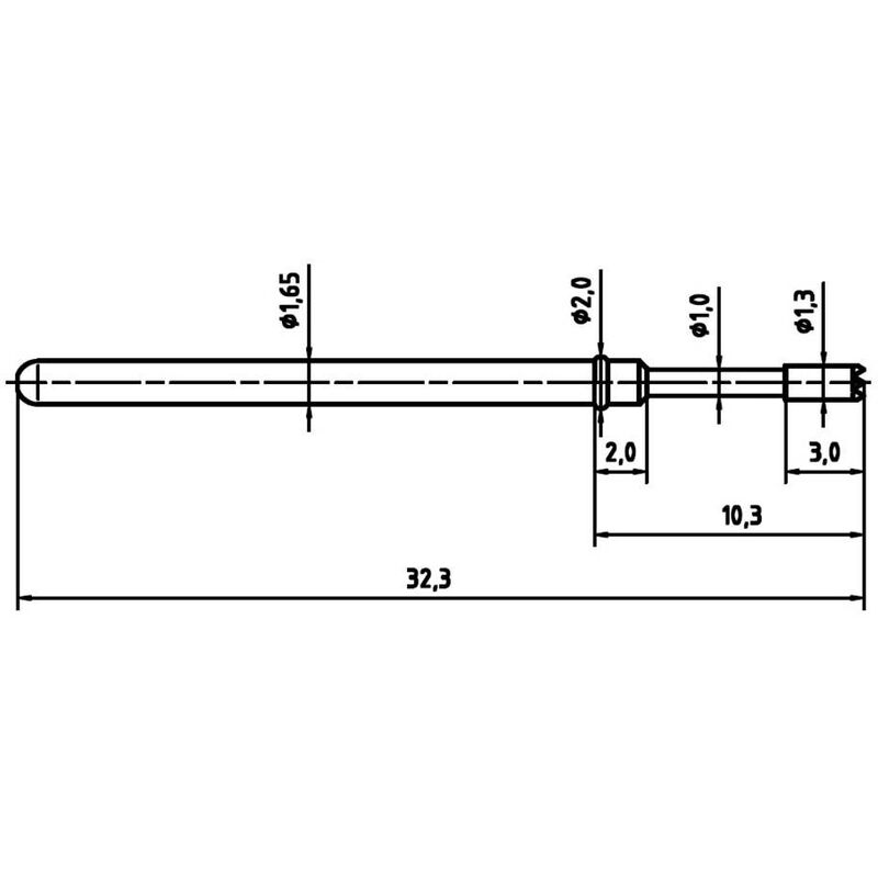 Dettagli tecnici Corrente nominale 3 A Forma della testa (contatti a molla) C Tipo prodotto Puntale di misura Ø perno 1.65 mm Resistenza di passaggio: ≤25 mΩ Punta di prova di precisione per test circuiti stampati Punta di prova di precisione a introduzione doppia con contatto a molla per gli assemblaggi e i test dei circuiti stampati. Composto da scatola guida con punta di contatto a molla con testa di scansione. La boccola che dev'essere ordinata separatamente è installata su un circuito stampato o una piastra in plexiglas e comprende una punta di prova. In questo modo la punta di prova si può cambiare o sostituire senza problemi. Incluso nella consegna null Requisiti di sistema null Note Codifica del tipo: xxxx (serie) - xx (forma della testa) - x.xN (pressione di contatto) - xx (finitura) - xx.xx (Ø testa in mm/materiale della testa) Finitura: AU = oro, RH = rodio, NI = nichel Materiale della testa: M = ottone, C = berillio. Illustration similar.