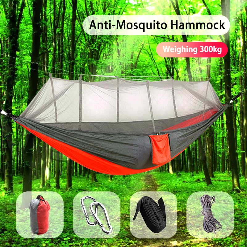 2021 Camping Hammock Go Swing With Mosquito Net Double Person Hammock Ultralight Outdoor Hunting Tourist Portable Hammock Tent