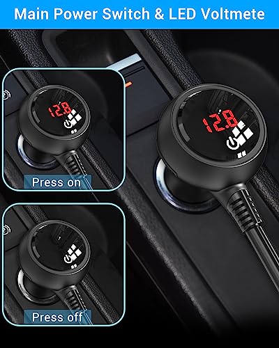 【Interruttore di Accensione / Spegnimento Facile】 L'interruttore di alimentazione principale con LED Voltmete controlla tutte le prese e 4 porte USB. Ridurre l'inserimento o l'estrazione dei dispositivi e prolungarne la durata. Tre interruttori indipendenti controllano rispettivamente tre prese accendisigari.