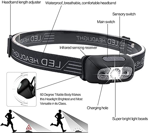 2021 Super Bright Light Sensor Mini LED Headlamp,Led Headlamp Rechargeable,IPX5 Waterproof Headlight for Outdoor Camping Running Cycling Fishing (1Pcs)