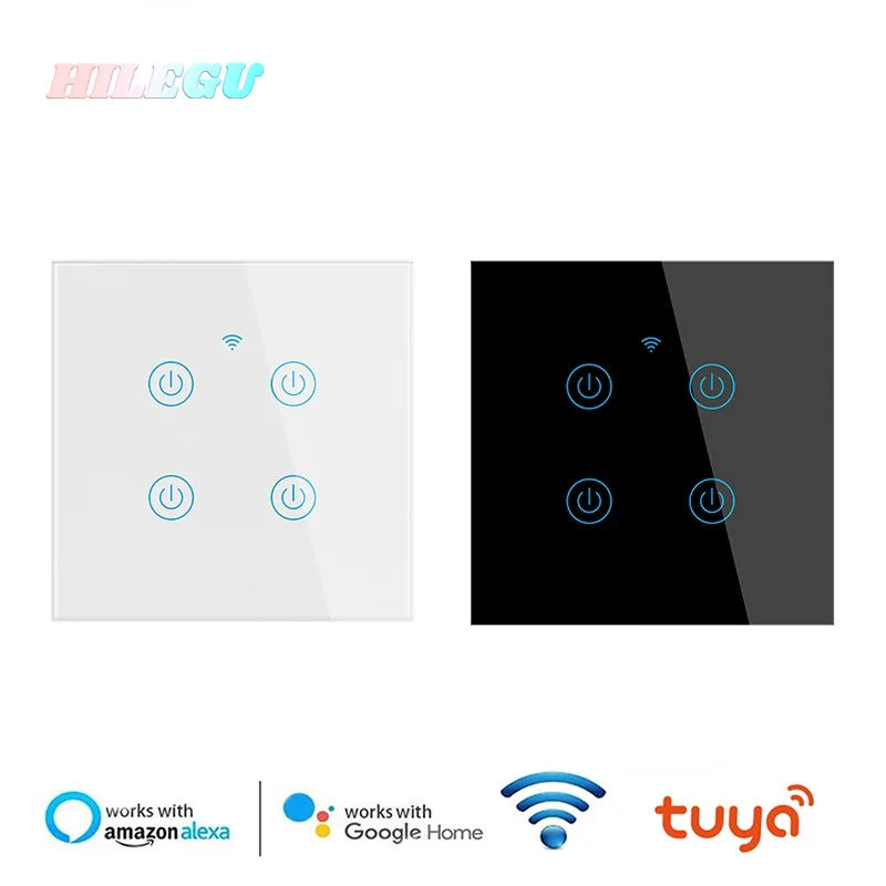 2021 New Tuya Smart Wifi Touch Switch EU Standard Wall Switch Neutral Line and Live Fire Wire (Universal) 1/2/3/4 Gang