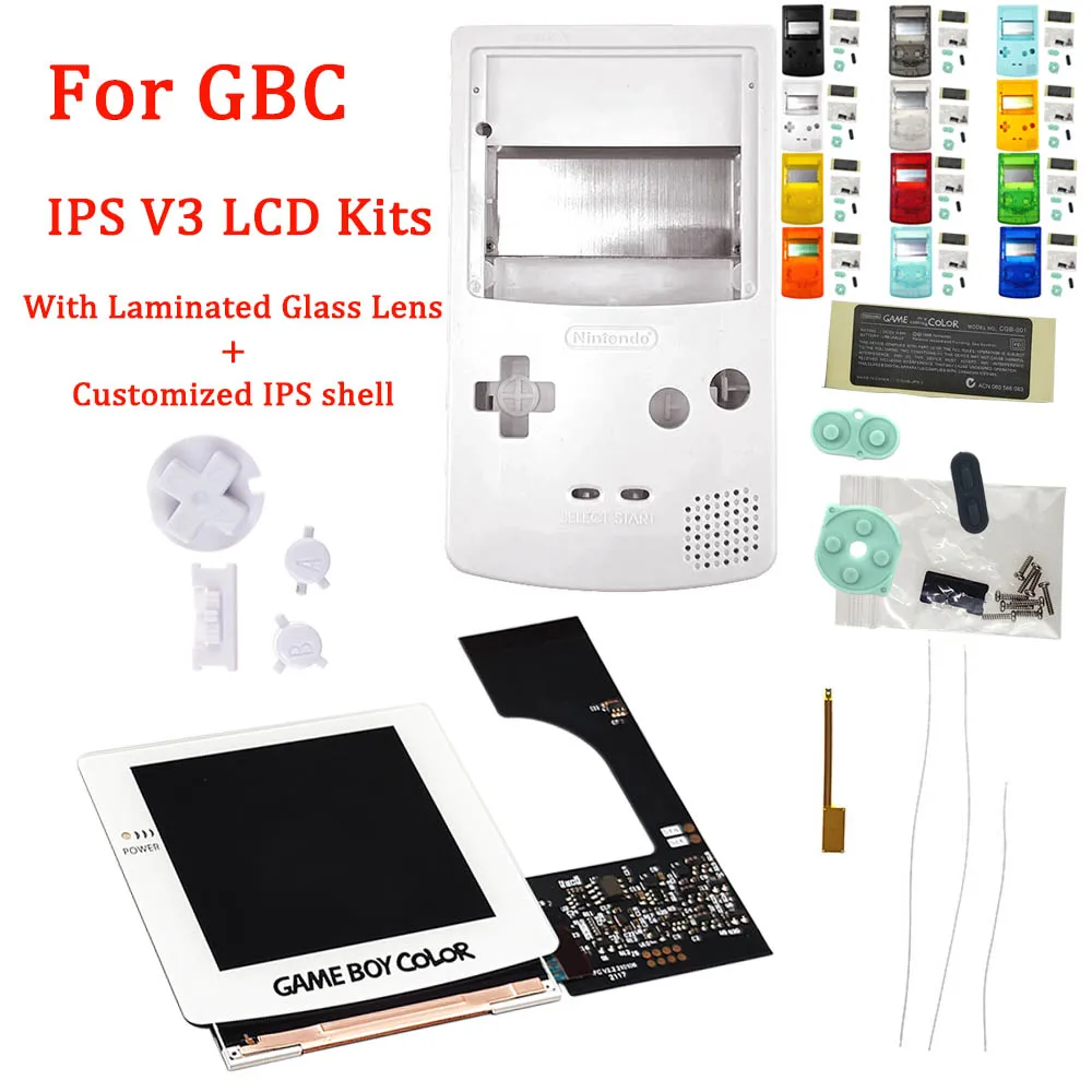 2021 White IPS V3 Laminated LCD Kits for GBC high light backlight IPS LCD Screen kits with Customized IPS Housing Shell sets