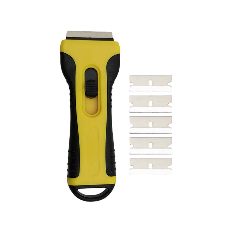 Bullet Points:1、Ergonomic design: The blade scraper design with an ergonomically curved handle provides greater comfort and control. Save time and effort in work, improve your efficiency2、Easy To Use: You only need to loosen the knob on the blade scraper and disassemble the upper cover to easily replace the blade. Moreover, we recommend that you take extra care when replacing the metal blade.3、Multi-functional scraper tool: This scraper removal tool can be used to remove decals, stickers, glue, labels, paint, and Tint from windows, walls, cars, tiles, floors, and glass. Also, it can remove food residues on the ovens, kitchen cook-tops, and glass top stoves4、 Good-quality products: Our stove scraper and blade are made of good-quality material and stainless steel blades. It is equipped with a non-slippage handle and a telescopic button. It is very easy to hold. The scraper tool can work or hide the blade stove scraper button.5、You will get: 1 roller scraper, 5 replacement blades, which