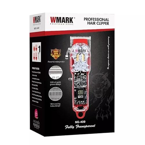 2022 Nuovo!WMARK NG-409 colore rosso Stile Trasparente Professionale Ricaricabile Clipper Cord & Cordless Hair Trimmer con lama dissolvenza