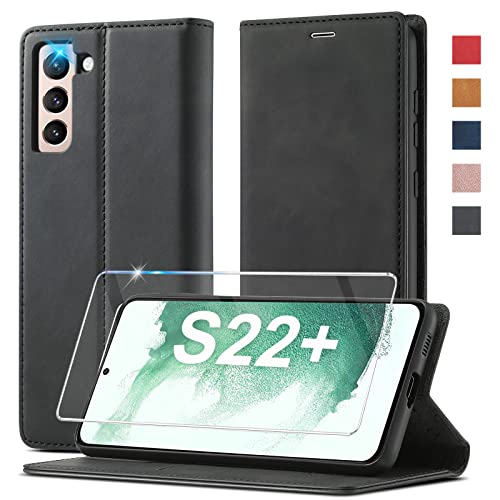 2022 Upgraded S22 Plus, custodia in pelle per Samsung Galaxy S22 Plus, con pellicola protettiva per Samsung S22 Plus, 5G, pieghevole, antiurto, in pelle