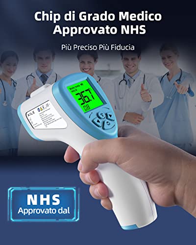 2023 - AILE termometro febbre infrarossi termometro frontale bambini Termometro approvato NHS termometro infrarossi, termometro digitale febbre 2 in 1 a lettura immediata con batteria termometri
