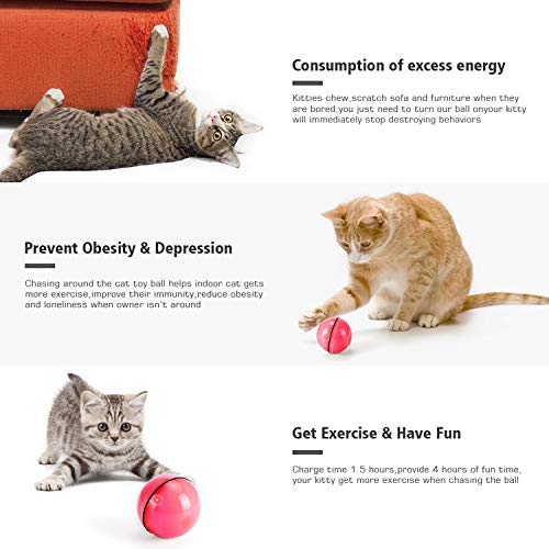 【Ricaricabile USB aggiornato】 - Batteria integrata agli ioni di litio da 250 mAh, può durare 4 ore dopo la ricarica per 1,5 ore. Può spegnersi automaticamente dopo 30 minuti, evitare che il tuo gatto perda interesse per la palla giocattolo ed è perfetto per coloro che non hanno tempo con i loro cani e gatti.