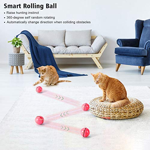 【Auto Rolling & LED Hunting】 - Basta premere il pulsante, la nostra palla giocattolo per gatti si muoverà automaticamente in modo casuale ed emetterà una luce rossa per attirare l'attenzione del tuo gatto. Può anche cambiare automaticamente direzione in caso di collisione con ostacoli come muri, sedie, porte, ecc.