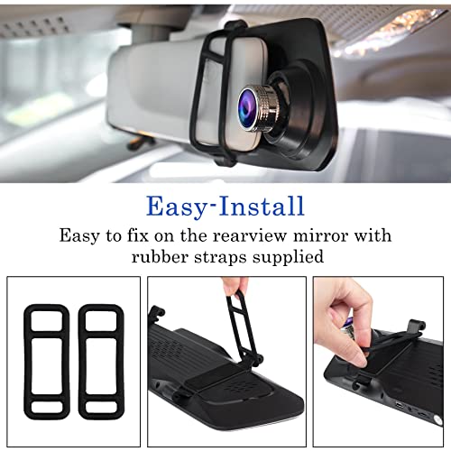 【Installazione Facile】: È molto facile installare questa cam da cruscotto a specchio, basta installarlo sul precedente specchietto retrovisore con le cinghie di gomma in dotazione, non è necessario rimuovere lo specchietto retrovisore dell'automobile.
