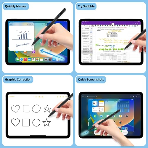 【Ottimizza la tua esperienza con iPad】 Questa penna è stata appositamente progettata per i modelli di iPad rilasciati tra il 2018 e il 2023. La compatibilità dettagliata comprende: iPad 6/7/8/9/10, iPad mini 5/6, iPad Air 3/4/5, iPad Pro 11 pollici dalle 1ª alla 4ª generazione e iPad Pro 12.9 pollici dalla 3ª alla 6ª generazione. Assicurati di avere il massimo dal tuo dispositivo e lavora con la massima precisione. Un accessorio esclusivo per gli appassionati possessori di iPad di questi modelli