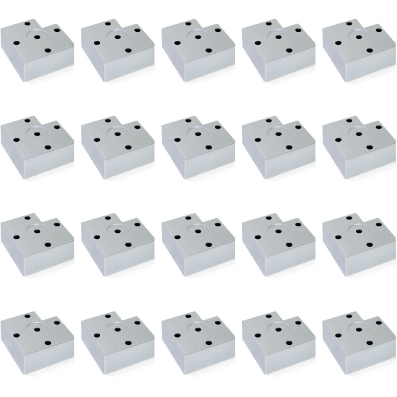 Set di 20 piedini per mobile fabbricati in plastica con finitura effetto metalizzato. Possono essere impilati per raggiungere l'altezza desiderata.