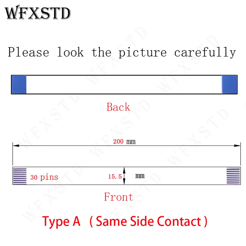 20cm 15.5mm 30pins Type A New Flex cable AWM 20706 105C 60V VW-1 E118077 or E129545 or Other Same side copper Contact Pins