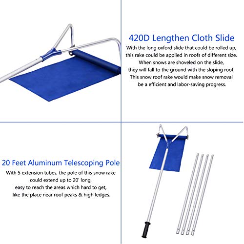 20'x 16 "Nylon Slide: il rastrello della neve presenta il panno 6m / 236.22in (circa) Oxford, la superficie liscia del tessuto aiuta la neve scendere dal tetto e il tessuto è leggero e forte ..