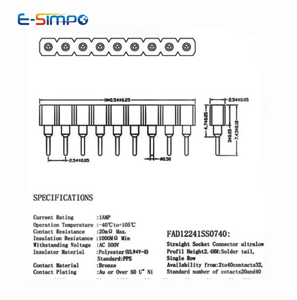 20pcs 1x40 Pin 2.54mm Round Tin Plated Breakable Single Row Hole PCB IC Female Pin Header Socket Connector