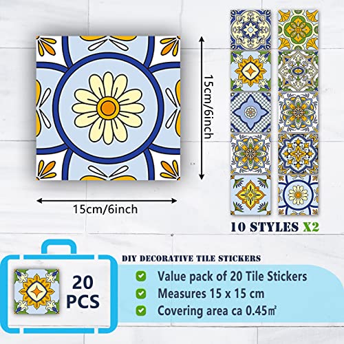 Decorazione DIY- 20 pezzi di adesivi per piastrelle sono inclusi.Ci sono tre taglie tra cui scegliere -10x10/15x15/20x20 cm.Stile retrò e bellissimo motivo di design, permettendoti di personalizzare e progettare completamente la tua superficie nel modo che preferisci.